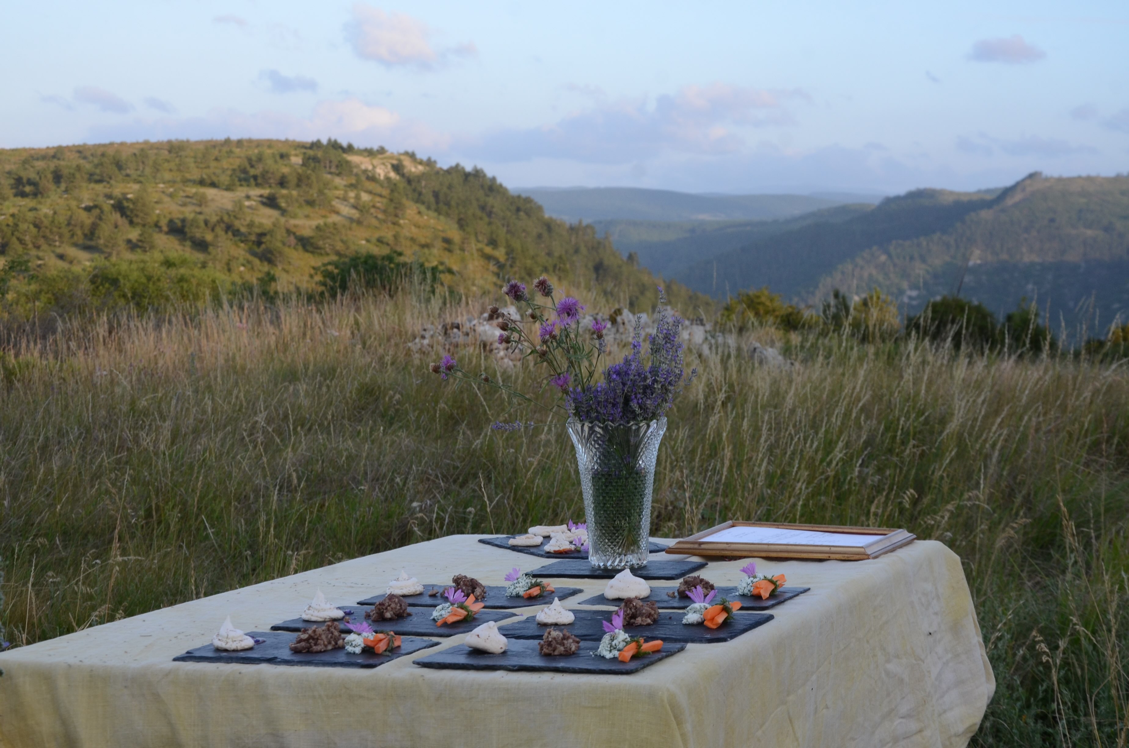 Following a reading of the landscape, my colleague Titiane Haton and I curated sensitive landscape encounters in the landscapes of the Cévennes, the Causses and the Lozère. We draw on all organs of perception, specifically, seeing, tasting and touching. Organised by the producer 'Les Scènes Croisées' our invitations were accompanied by theatre plays, exhibitions, readings and conferences.