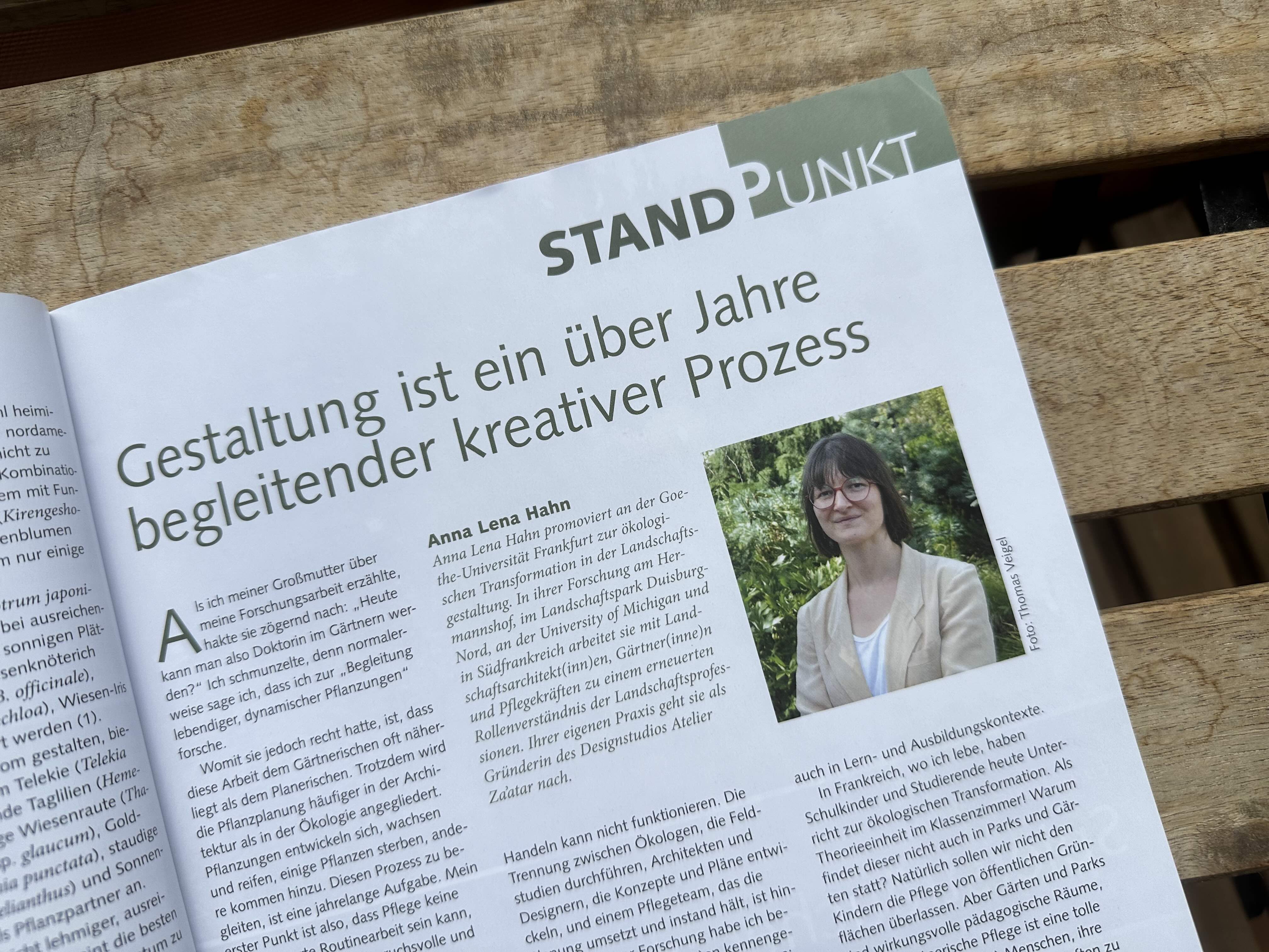 In this article for Gartenpraxis (3/24), Ulmer, I shine light on the separation of garden design into phases of observing, creating and maintaining and show why such a fragmentation is not helpful in the work with living plant communities.